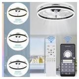 Oaks Aura 20in. LED Indoor Black Bladeless Low Profile Ceiling Fan Flush Mount Smart App Remote Control Dimmable Lighting