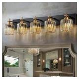 EDISLIVE Orillia 35.4 in. 5-Light Black Bathroom Vanity Light with Crystal Shade Wall Sconce Over Mirror