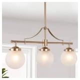 Uolfin Farmhouse Gold Linear Island Chandelier, Ismo 3-Light Modern Dining Room Chandelier with Globe Frosted Glass Shades