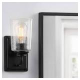 Evangeline 4.5 in. 1-Light Matte Black Indoor Wall Farmhouse Sconce with Clear Seeded Glass Shade