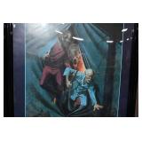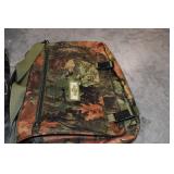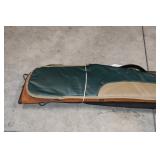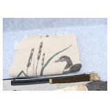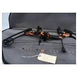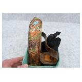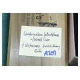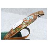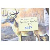 427R.    German – Mod. Drilling – 16ga. x 16ga. x 9.3x72R Cal. 3-Barrel Shotgun/Rifle Combo – w/26 ¾” Solid Rib Barrels w/Blade Front Button & Flip Up Notch Rear Sights – w/Claw Foot Scope Mounting Bases – Blued/Gray Finish – w/Fine Engraved Metal Work on Gun w/Scenes of Deer, Elk & Floral Scenes w/Mother of Pearl Flowers Shells & Butterflies Inlays in Stocks – w/Deluxe Fine Line Checkered Capped Pistol Grip Wood Stocks w/Raised Cheek Piece & Metal Replaced Butt Plate & Wood Extension – w/Working Flip Rear Barrel Sight – Butt Stock Added on to – w/Cartridge 4 Shell Carrier in Butt Stock w/Engraved Lid