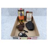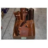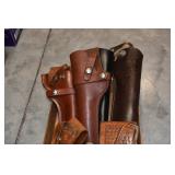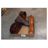 431.       Lot of 3 Holsters, 1 Leather Possibles Bag & 1 Set of Smith & Wesson Grips