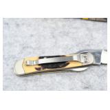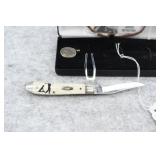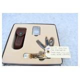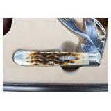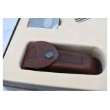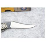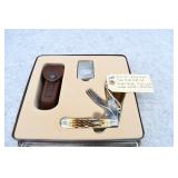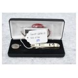 17R.      Smith & Wesson – Mod. 19-3 – Texas Rangers Commemorative Set Limited Edition – 357 Mag. Cal. Double Action Revolver – w/4” Solid Rib Barrel w/Red Ramp Blade Front & White Outlined Adj. Rear Notch Sights – Blued/Gold Accent Finish – w/S&W Medallion Smooth Hardwood Target Grips, Target Hammer & Target Trigger (3Ts) – w/S&W Bowie Knife & Texas Rangers Co. E Badge – In S&W Presentation Case – 1 of 10,000 Guns – Only 8,000 Included the Bowie Knife – w/Printed Manual