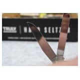 413R.    Piedmont – Mod. Hammerless Coach Gun – 12ga. Double Barrel Shotgun – w/20” Cyl. Choke, Solid Rib, Damascus Barrels w/Bead Sight – Brown Finish – w/Checkered Round Knob Pistol Grip Wood Stocks w/Checkered Hard Rubber Butt Plate w/Wells Fargo Brass Star on Right Side of Stock & Stagecoach Carving on Left Side of Stock