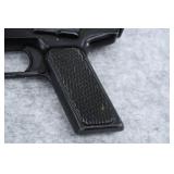 441R.    Remington-Rand – Mod. 1911-A1 US Army – US Property Marked – 45 Auto Cal. Semi-Auto Pistol – w/5” Barrel w/Blade Front & Adj. Rear Notch Sights – Military Finish – w/Checkered Brown Plastic Grips– w/Factory Detachable Magazine –w/Boyt 44 Dated Black Leather Holster