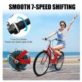 【SMOOTH GEAR SHIFTING】: This Cruiser bike comes equipped with a 7-speed derailleur and twist shifters that allow for smooth and precise gear changes, ensuring you can tackle various terrains with ease—whether you're navigating city streets or winding trails.