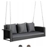VINGLI Heavy Duty 800 LBS Wicker Hanging Porch Swing with Cushions & Chains, 5FT Outdoor Rattan Swing Bench for Garden, Yard, Lawn (Black)
