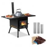 Ktaxon Outdoor Portable Wood Tent Camping Stove, designed for versatile outdoor use. Its compact, foldable design (17.6LBS) with integrated chimney storage and ash cleanup hook ensures easy transportation and storage. Crafted from durable carbon steel, this Wood Burning Stove boasts a sturdy hinged door and adjustable vents for energy-efficient performance. The detachable top adds functionality, while the sturdy frame guarantees stability. Comprehensive accessories, including three chimney pipe diameters and a fire blanket, offer flexibility. Ideal for Camping, Hiking, and Outdoor Cooking, this stove provides warmth and reliability for all your adventures.