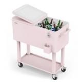80 Quart Portable Outdoor Patio Rolling Cooler Cart Pink