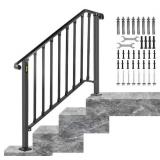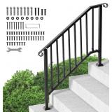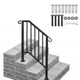 VEVOR Handrails for Outdoor Steps, 3-4 Step Stair Hand Rail Kit, Transitional Carbon Steel Railings with Installation Kit, Stair Rails for Seniors, Concrete Steps & Porch & Deck, Black Retro Arch