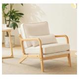 Ktaxon Mid-Century Modern Arm Chair with Solid Wood Frame,Teddy Velvet Fabric Club Chair,Beige