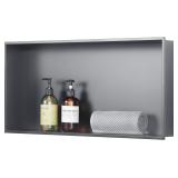Sunrosa 12" x 24" Gray Shower Niche Stainless Steel NO Tile Needed, Waterproof Bathroom Recessed Niche, Organizer Storage for Shampoo & Toiletry Storage