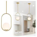 Gold Pendant Light Kitchen Island 5.9" Globe Milk Glass Shade Mid Century Modern Pendant Lighting Fixture for Hallway Entryway Closet Bathroom Bedroom Laundry Room Easy Install