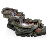 (11). Alpine Corporation 60" Long Outdoor 3-Tier Rainforest Rock River Water Hand-Painted Fountain with LED Lights