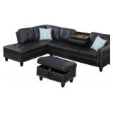 ****OTTOMAN ONLY**** Devion Furniture Transitional PU Faux Leather Sectional Sofa with Lift-top Storage Ottoman, for Living Room in Black Finish