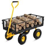 Dolly features heavy-gauge steel construction, ten-inch pneumatic tires, and an adjustable handle