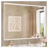 Keonjinn 48” x 36” White Bathroom Vanity Mirror Metal Framed Large Bathroom Mirror for Over Sink Rectangular Wall Mirror Square Corner Farmhouse Matte White Rectangle Mirror(Horizontal/Vertical)