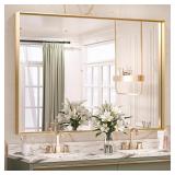Keonjinn Gold Bathroom Mirror 48” x 36” Brushed Gold Metal Framed Mirror Rectangular Large Wall Mirror Square Corner Vanity Mirror Oversized Mirror for Over Sink(Horizontal/Vertical)