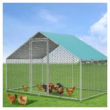 Large Metal Chicken Coop Walk-in Poultry Cage Chicken Run for 6 Chickens Duck House with Waterproof and Anti-Ultraviolet Cover for Outdoor Farm Use(6.6'L x 9.8'W x 6.4'H)