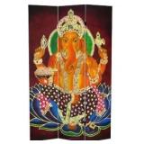 (14) Red Lantern 6 ft. Tall Double Sided Ganesh Canvas Room Divider 3 Panel Freestanding Partition