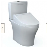 The TOTO T40 WASHLET Aquia IV two-piece elongated dual flush 1.28 and 0.9 GPF toilet and WASHLET C5 bidet seat is designed to conceal the WASHLET power cord and water supply hose for a seamless installation. Part of the newly redesigned C Series, the WASHLET C5 features a soft rear spray, rear cleanse, and front cleanse with the option of an oscillating or pulsating stream. The temperature and pressure of the water are adjustable, each with five settings. The controls are located on a slim, wireless remote. The WASHLET features a heated SoftClose seat with five temperature settings. The WASHLET features an air deodorizer and a warm air dryer with five temperature settings. The chrome center-mounted push button that sits atop the tank allows you to proactively conserve water by choosing between a 0.9 GPF rinse or 1.28 GPF for tougher jobs. The Aquia IV comes ready for install into a 12" rough-in, but may be adapted for a 10" or 14" rough-in with the purchase of a separately sold adapter. Additional items needed for installation must be purchased separately: wax ring, toilet mounting bolts, and toilet water supply lines. compatible with T40 WASHLET electronic bidet seat and toilet bowl components only.