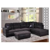 Convertible Sectional Sofa With Hidden Storage Armrests, A Movable Ottoman, 2 USB Ports, 2 Cup Holders, A Phone Holder ***5 Boxes***