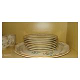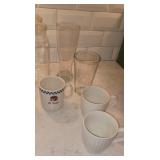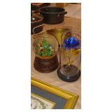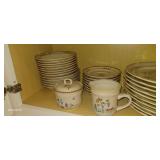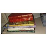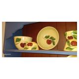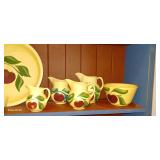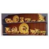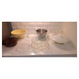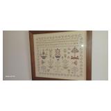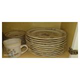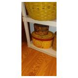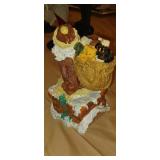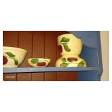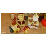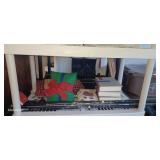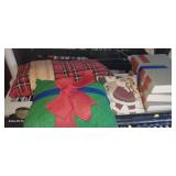 Doughbowls, Quilt, Rugs, Chairs, Spindle Bed Full size, Ladder, Some Yard Tools, Pumpkin Decoration, Baskets, Books, Highboy, Mule Chest, 3 Drawer Chest, Painted Cottage Chest of Drawers, Hooded Cradle, Childs Rocker, Child's Chair, Hutch, Watt Pottery, Recliner, Prints, Painting, Light Bulbs, Mirrors, Samplers, Santas, Byer Carolers, Pillows, Teddy Bears, a Wagon Full of Ornaments, Boxes, Crocks, Glasses Set of Bordeaux by Rose China Japan, Heartland China by International, Coat Rack, Pewter, Bench, Table, Lamps, and More |