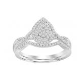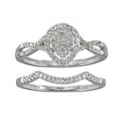 (55) **Size 7** 10K White Gold 1/4 ct tw Diamond Pear-Design Crossover Bridal Set