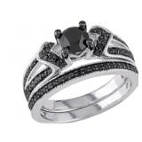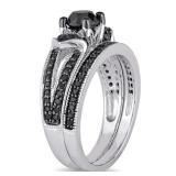(87) **Size 7** Diamore Sterling Silver 1-1/8 ct tw Black Diamond Bridal Set