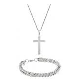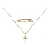 Morgan & Paige 18K Gold and Rhodium Over Sterling Silver Diamond-Accent Cross Pendant and Faith, Love, Hope Bracelet Set