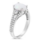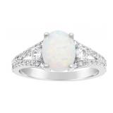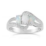 **Opal** Sterling Silver Three Oval Birthstone Ring