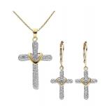 Morgan & Paige 18K Gold and Rhodium Over Sterling Silver Diamond-Accent Cross Pendant and Earrings Set