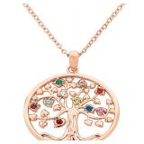 Goldtone, Rose Goldtone or Rhodium Over Brass Simulated Birthstone Tree of Life Pendant Necklace
