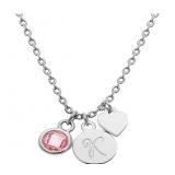 **J** Silvertone Personalized Mini Initial Disc, Simulated Birthstone and Heart Cluster Pendant Necklace **J**