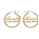 Personalize these hoops with any name to create a unique gift offine jewelry for her. Finished with sparkling diamond-cutaccents.