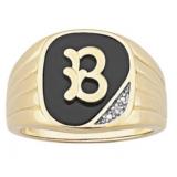 **Size 10** **K** Men's 14K Gold Over Base Metal Black Onyx Diamond-Accent Personalized Initial Ring **K**
