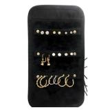 Silvertone and Goldtone Earrings 9-Pair Set in a Jewelry Roll