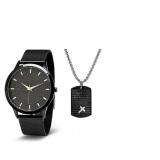 Steeltime Men's Stainless Steel Bracelet Our Father Prayer Watch and Dog Tag Pendant Necklace 2-Pc. Set