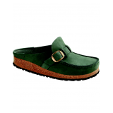 - Cork footbed with memory foam cushioning and suede liner