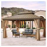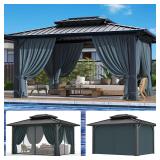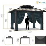 (161) HOTEEL 10x12 Hardtop Gazebo Heavy Duty Gazebo with Galvanized Steel Double Roof, Hot Tub Gazebo with Flame-Retardant Curtain & Netting, Aluminum Frame Outdoor Canopy for Patio and Party (Upgraded 3.0) - 2 boxes