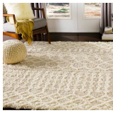(62) Livabliss 8'10"x12' Pinnacle Shag Global Rug Cream: High Pile, Stain & Fade-Resistant, Traditional Style