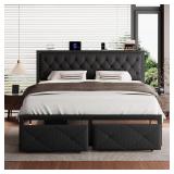- Clever Storage Solutions: The headboard features two discreet compartments for storing bedding, books, or personal items. Additionally, there's a spacious 12.2-inch under-bed storage area, promoting bedroom organization and tidiness
