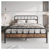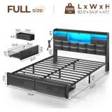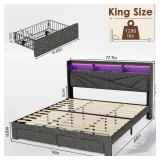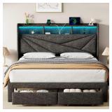 YITAHOME Bed Frame Queen Size, LED Bed Frame with Upholstered Storage Headboard, Heavy Duty Platform Bed with Charging Station & Metal Slats, No Box Spring Needed, Gray