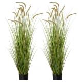 KOL Artificial 5ft 2-Pack Horsetail Reed Grass, 59in Tall Artificial Indoor Outdoor Fake Grass Plant, Home Office Decorative Artificial Plants in Pot Faux Plant Greenery, Wedding Decor Grass