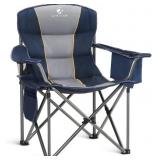 ALPHA CAMP Oversized Camping Folding Chair Heavy Duty with Cooler Bag Support 450 LBS Steel Frame Collapsible Padded Arm Quad Lumbar Back Chair Portable for Lawn Outdoor,Blue
