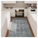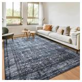 8x10 Area Rugs Washable Rugs for Living Room Bedroom Accent Vintage Floral Retro Large Traditional Floor Cover Print Rug Distressed Thin Non Slip Low Pile Indoor Carpet Dining Room Office Black/Blue