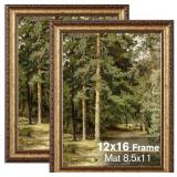 12x16 Gold Picture Frame, 2 Pack Ornate Vintage Picture Frames for Wall or Tabletop Display, 12x16 Photo Frame Gold with Real Glass, Display Poster 8.5x11 with Mat or 12 x 16 without Mat for Antique Déco