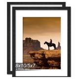 8x10 Picture Frame Set of 2, Black Engineered Wood Frame for 8 x 10 Inch Picture Poster Photo, Light Weight 8 by 10 Frame with Wood-grain for Wall - 2 Pack/Black/8"x10"