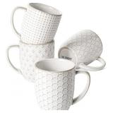 LE TAUCI Coffee Mugs 12 oz, Ceramic Mug Set, Embossment Cups for Latte, Hot Tea, Cappuccino, Mocha, Cocoa,Suit For Housewarming Wedding - 3.4 inch, Set of 4, Arctic White