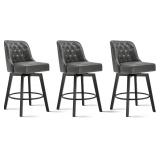 (98). Counter Height Swivel Barstools with Back,26" H Seat Height Upholstered Bar Stools for Kitchen Island,Set of 3,Grey Leather